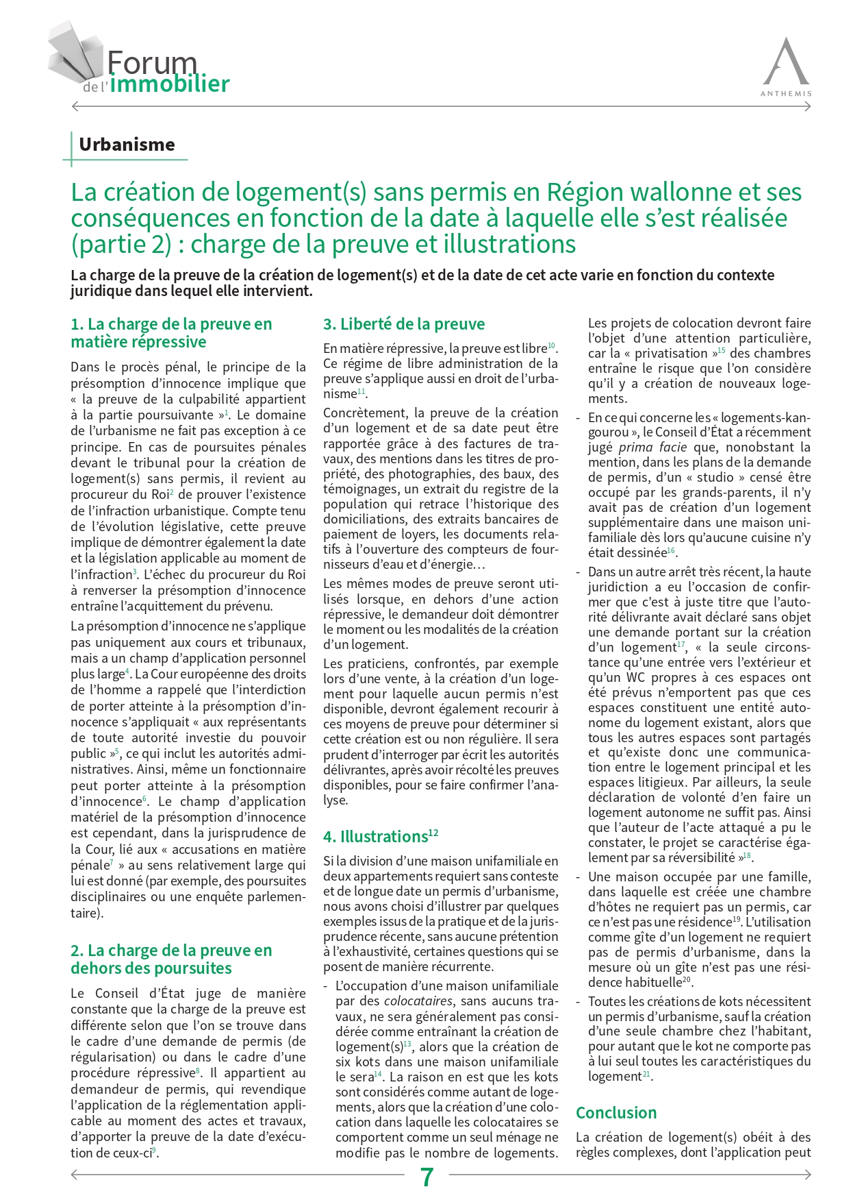 La création de logement(s) sans permis en Région wallonne et ses conséquences en fonction de la date à laquelle elle s’est réalisée (partie 2) : charge de la preuve et illustrations