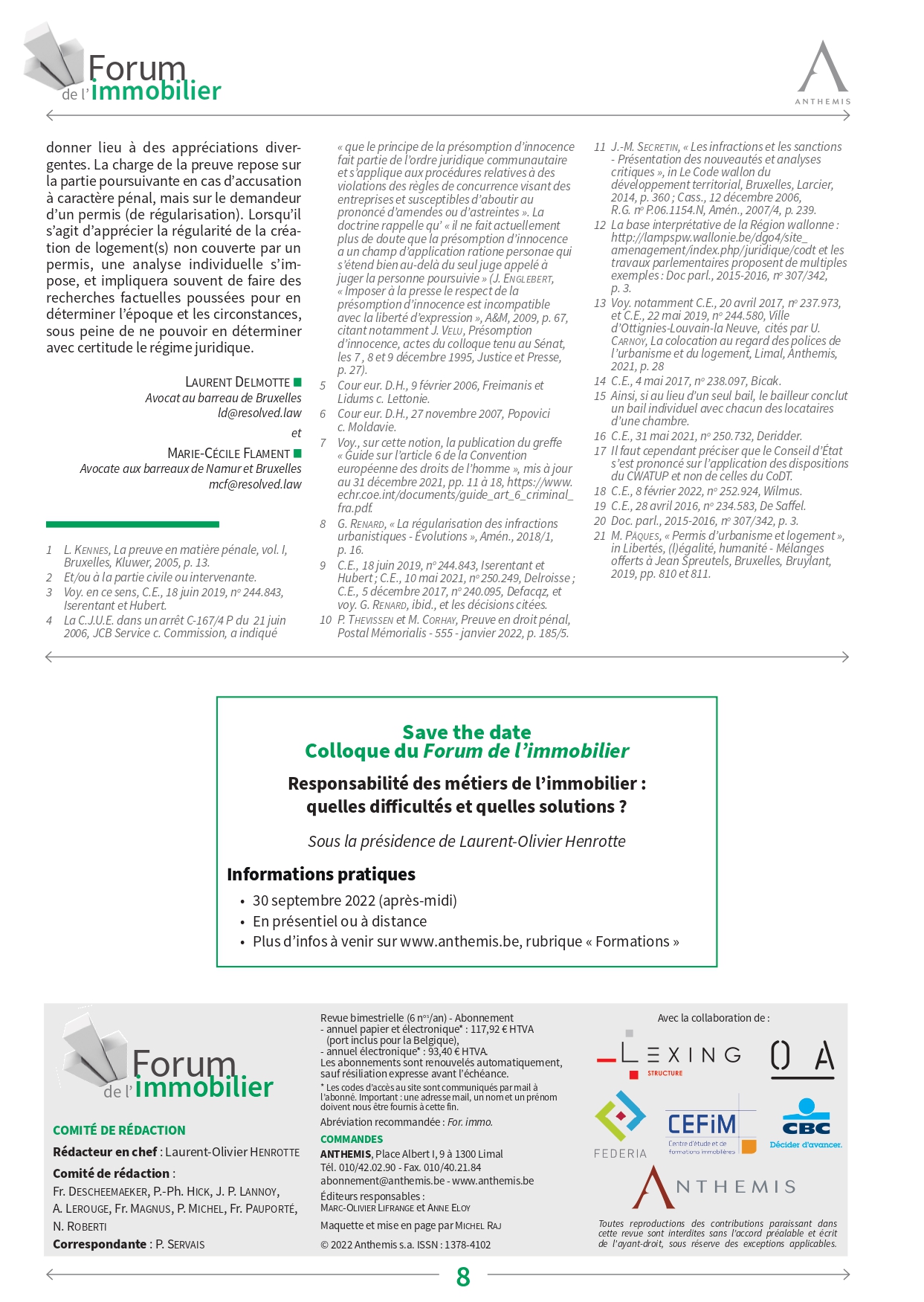 Cet article a été préalablement été publié dans le Forum Immobilier (éditions Anthémis), qui nous a aimablement autorisé à le mettre à disposition sur notre site